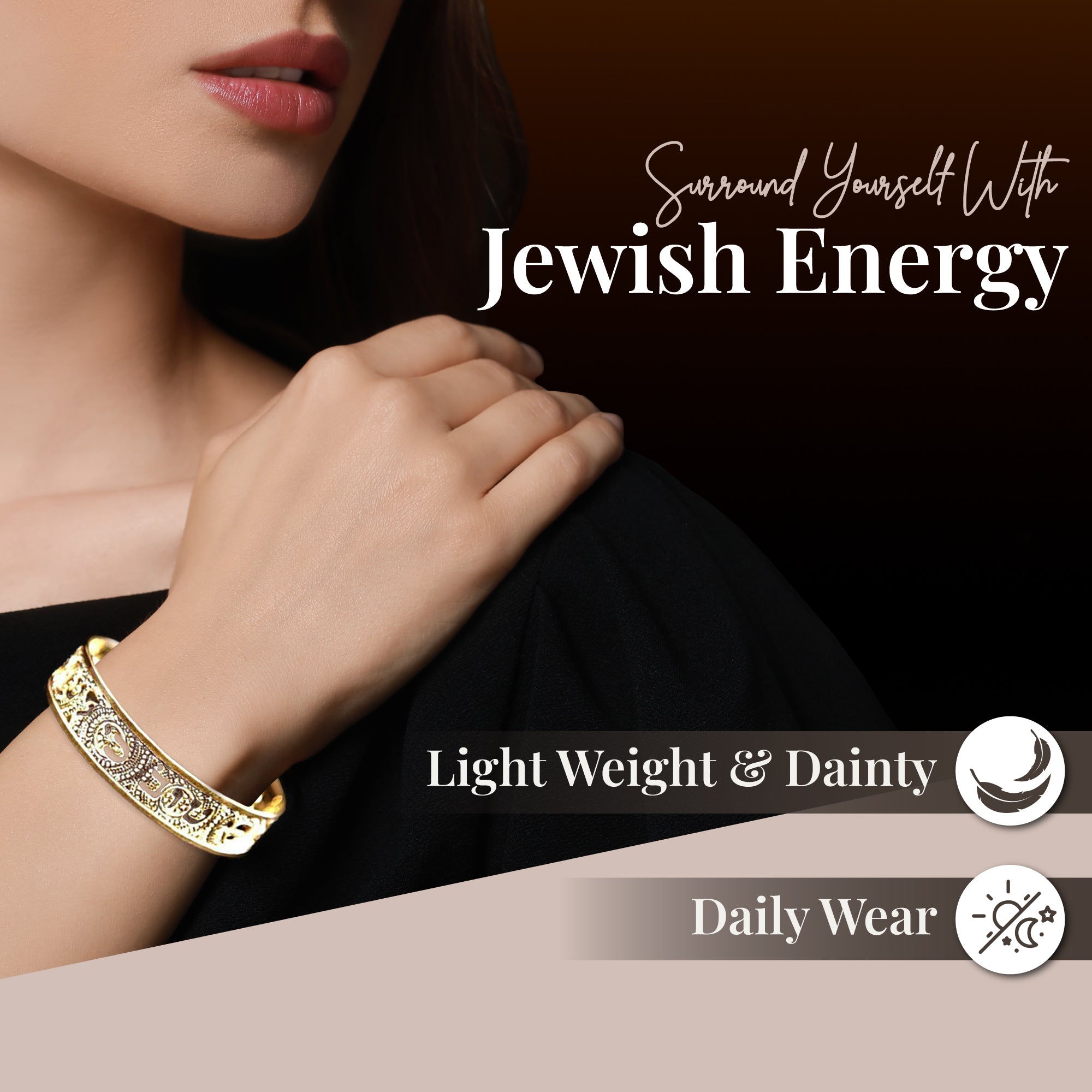 Gold cuff with a Psalms verse inscribed around it in biblical Hebrew font.